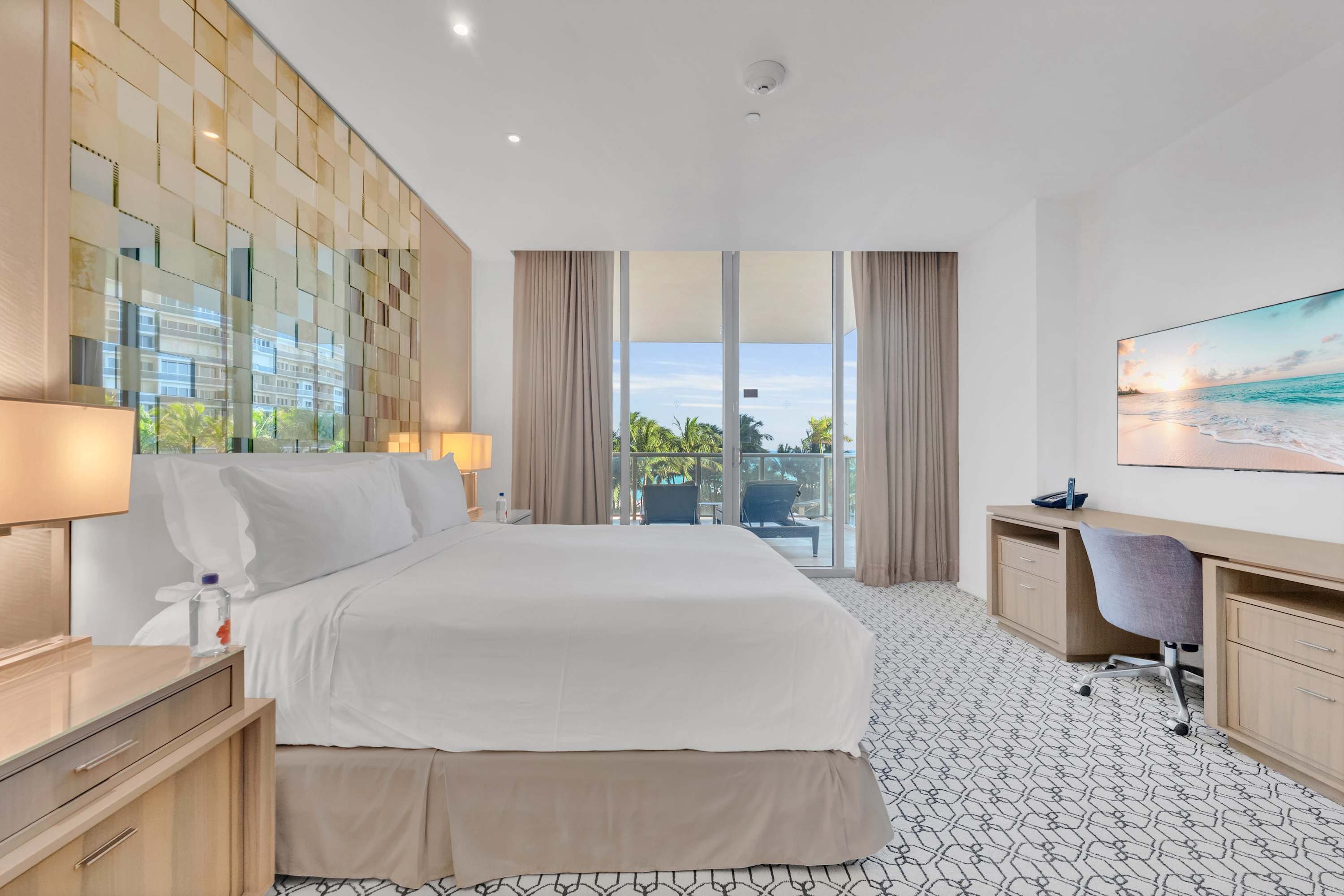 The hotel is near the upscale Bal Harbour Shops and provides easy access to outdoor activities like boating, paddleboarding, and more.