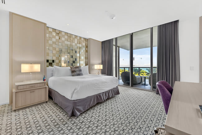 Indulge in the luxurious Atlantic Suite in the 5-star St. Regis Hotel located in the heart of Bal Harbour - one of the most upscale neighborhoods in Miami. Valued at over $3M+, this stunning suite features 2 large terraces directly facing the white sandy beaches of Miami. With 10 foot floor-to-ceiling windows and rich finishes all around, this unit is top of its class. The best part? All amenities at the St. Regis are included in your stay. Read below.