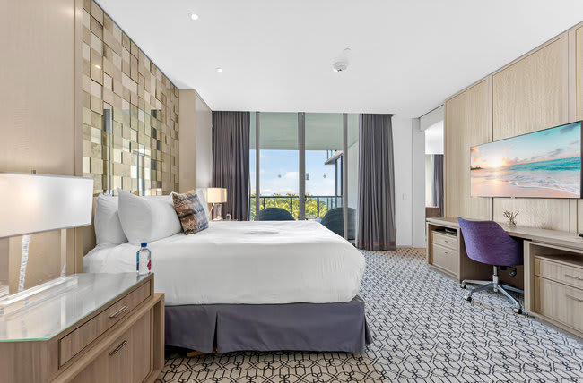 The hotel is near the upscale Bal Harbour Shops and provides easy access to outdoor activities like boating, paddleboarding, and more.